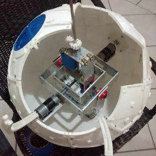 Mas como a bola ainda nao tinha as partes externas prontas e como o drive era forte e pesado, durante os testes, a bola foi danificada, portanto tive que colocar uma camada de fibra de vidro, por dentro, para fortalecer toda a estrutura.